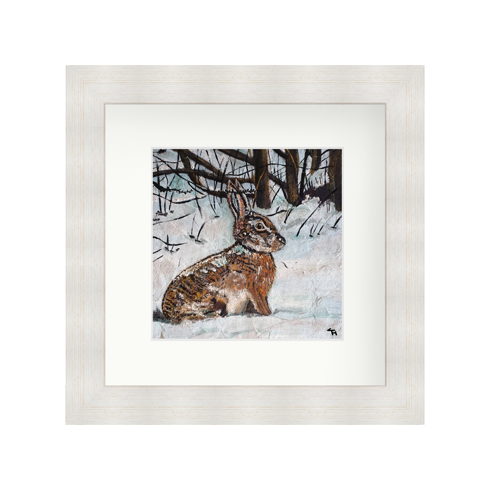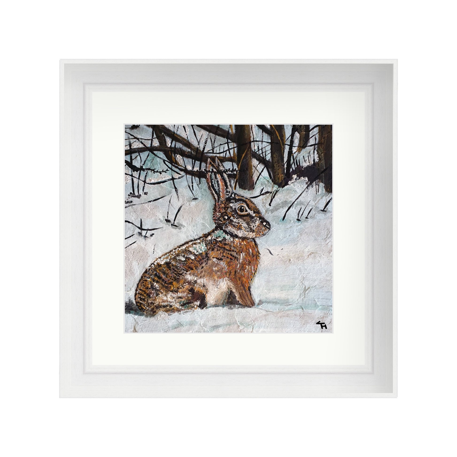Individually signed open edition giclée print of "Hare in Snowy Woodland"