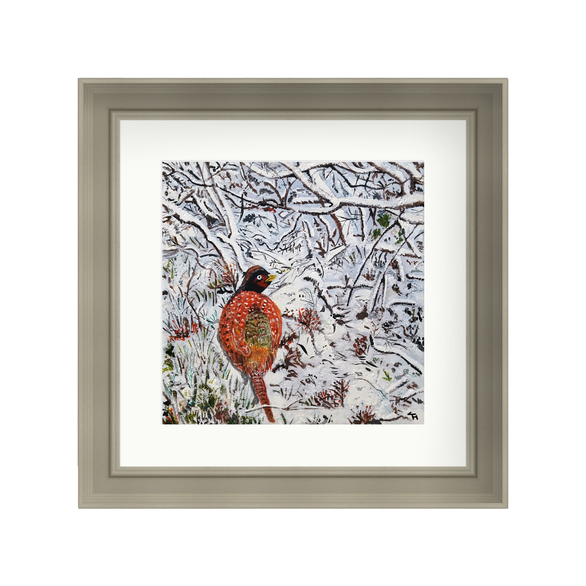 Individually signed open edition giclée print of "Snowy Scene Pheasant"