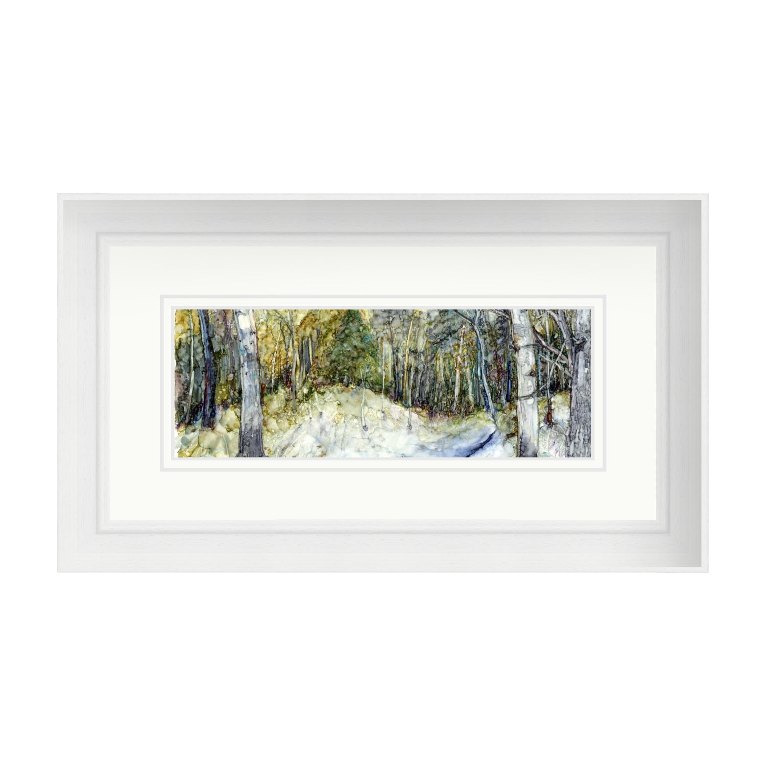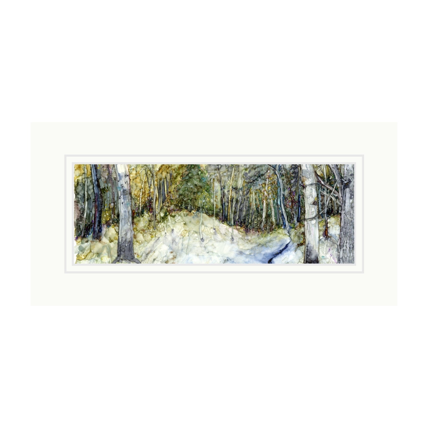 Individually signed open edition giclée print of "Winter Woodland with Stream in Alcohol Ink"